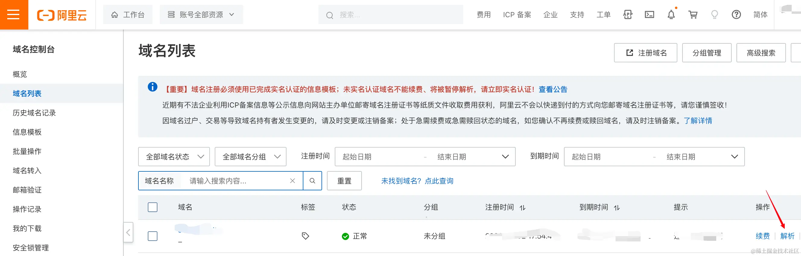(1)首先要有域名,这里推荐在阿里云里申请一个(找最便宜的一个就可以),一定要实名认证否则配置不了DNS,具体流程可以在网上搜一下,教程有很多。