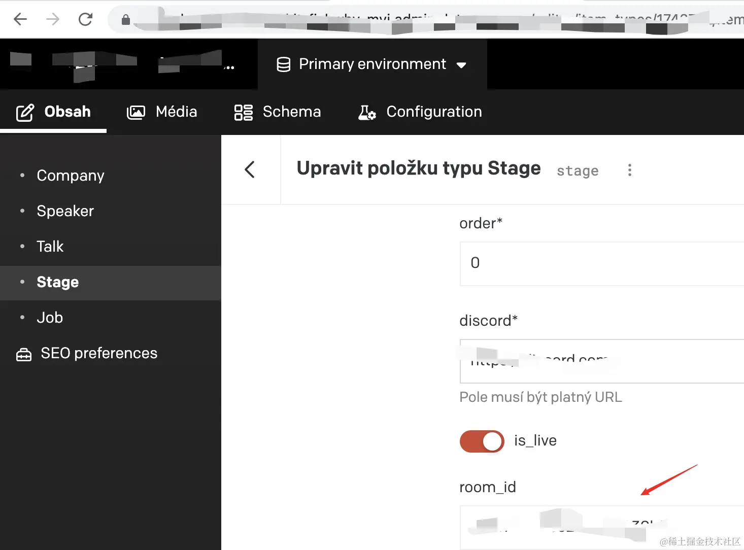 平台设置好ROOM后,可以获取正确的ROOM ID如653f760ddfa3214e11aff413f4,这时就要将该ROOM ID设置在DateCMS下 Stage => Live Stage => room id,如下图: