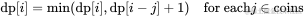 dp[i] = min(dp[i], dp[i - coin] + 1);