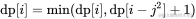 dp[i] = min(dp[i], dp[i - j * j] + 1);