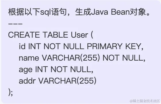 GPT 今天大火,但是 GPT 对于 Java 等程序员有什么作用呢?今天我分享一个能对 Java 程序员提效的点:GPT 能很好的帮我们解决代码生成的问题,以前像 MyBatis 等代码生成都需要使用代码生成包,或者插件。