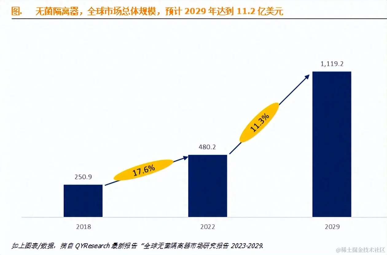 据QYResearch调研团队最新报告“全球无菌隔离器市场报告2023-2029”显示,预计2029年全球无菌隔离器市场规模将达到11.2亿美元,未来几年年复合增长率CAGR为11.3%。