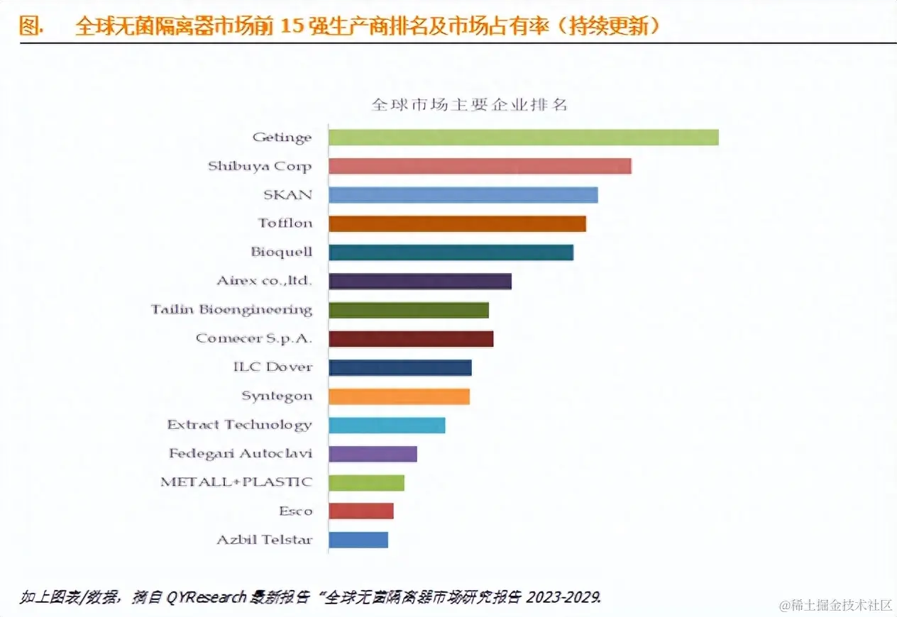 全球范围内无菌隔离器生产商主要包括Getinge、Shibuya Corp、SKAN、Tofflon、Bioquell、Airex co.,ltd.、Tailin Bioengineering、Comecer S.p.A.、ILC Dover、Syntegon等。2022年,全球前十强厂商占有大约66.0%的市场份额。