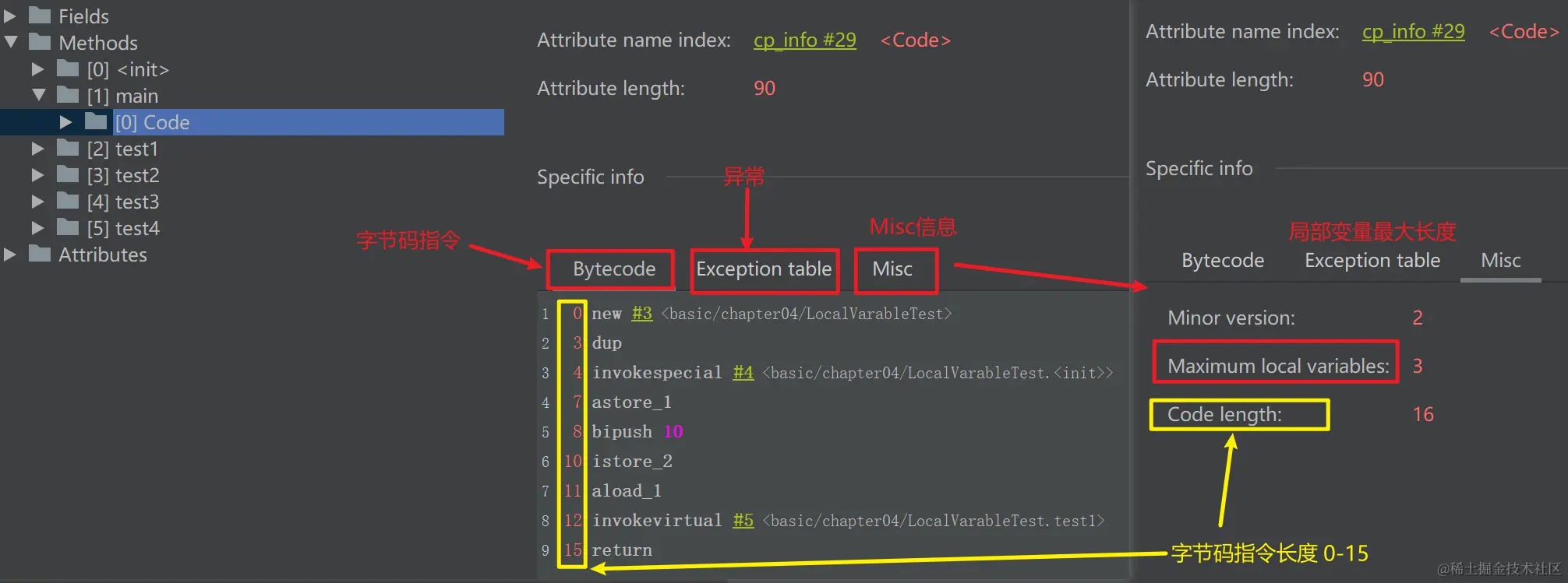 - 每一个操作数栈都会拥有一个明确的栈深度用于存储数值,其所需的最大深度在编译器就定义好了,保存在方法的code属性中,为max_stack的值。