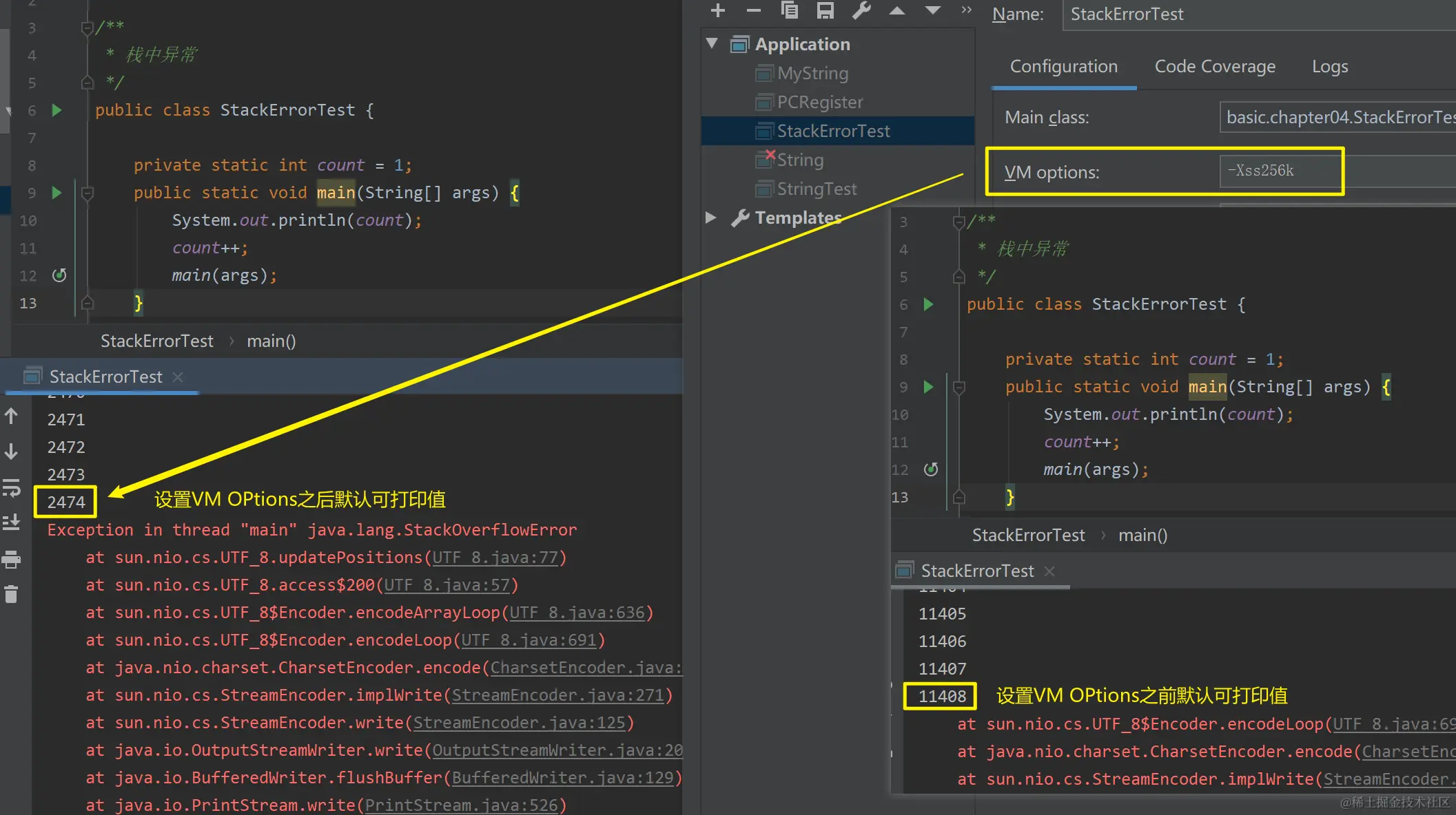 IDEA设置方法:Run-EditConfigurations-VM options 填入指定栈的大小-Xss256k