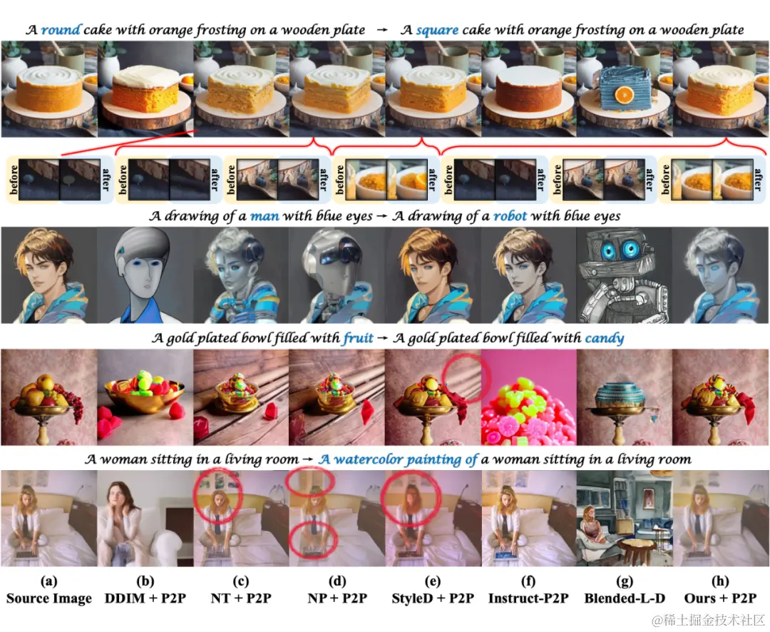 这篇文章通过解耦编辑分支和保留分支,仅用三行代码就能够大幅提升现有编辑算法效果(如图 3 中伪代码),具体做法非常简单,即:将保留分支加回到原始 DDIM Inversion 路径,而保持编辑分支不被影响。