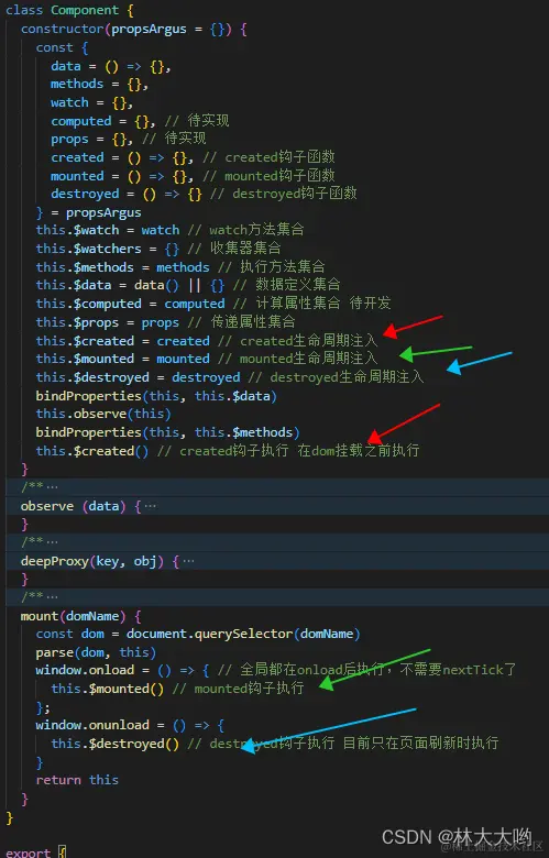 这三个生命周期都和vue2用法一致,内部核心如下,这一点我倒是没有参考任何东西,根据自己想法写的~
