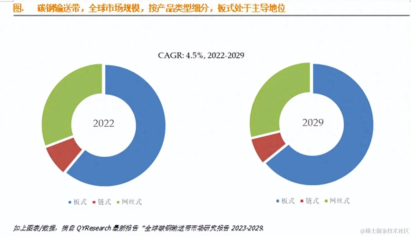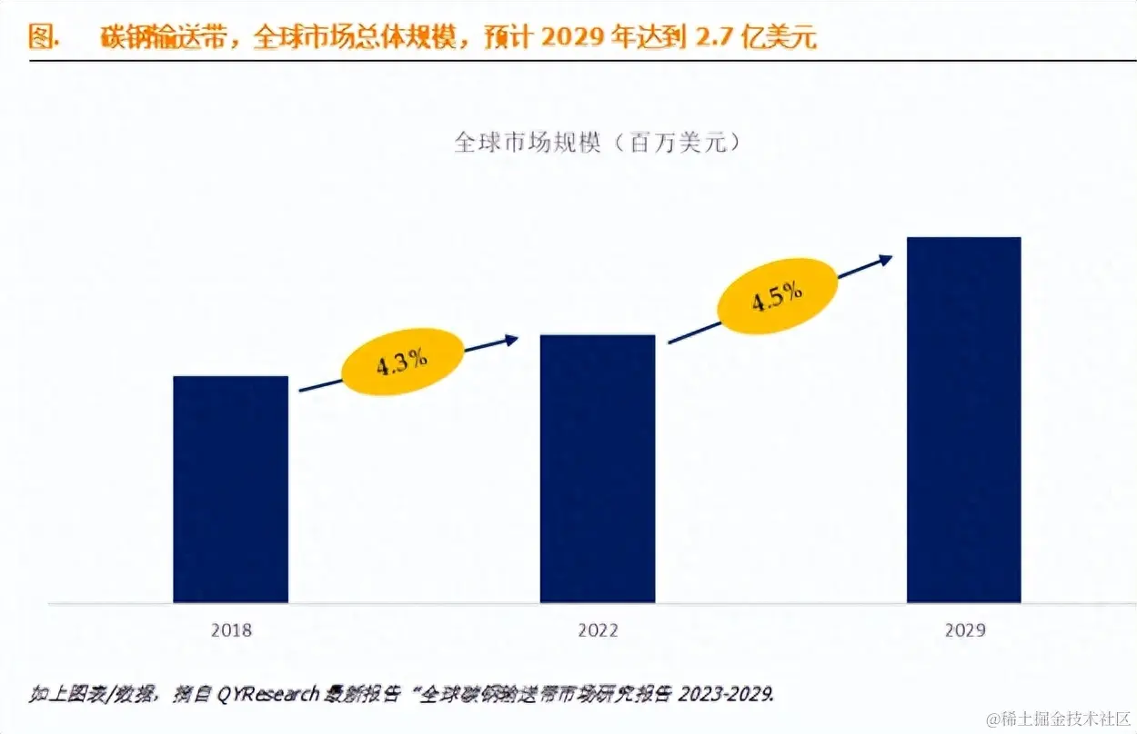 据QYResearch调研团队最新报告“全球碳钢输送带市场报告2023-2029”显示,预计2029年全球碳钢输送带市场规模将达到2.7亿美元,未来几年年复合增长率CAGR为4.4%。