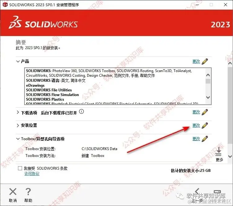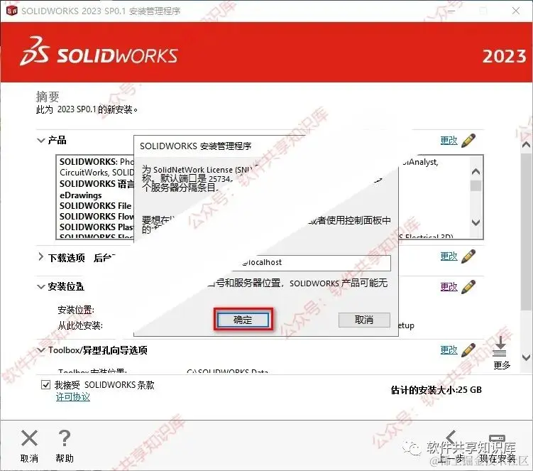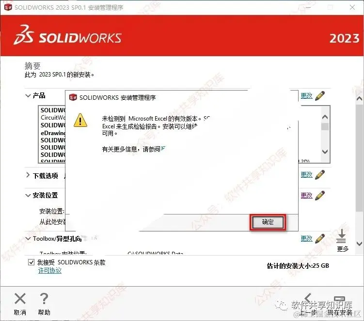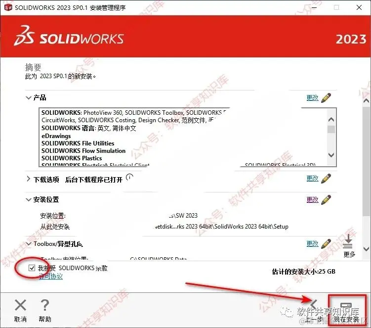 18.勾选我接受SOLIDWORKS条款,点击“现在安装”。