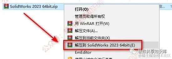 1.通过文章末尾处下载软件后,右键解压SolidWorks 2023。