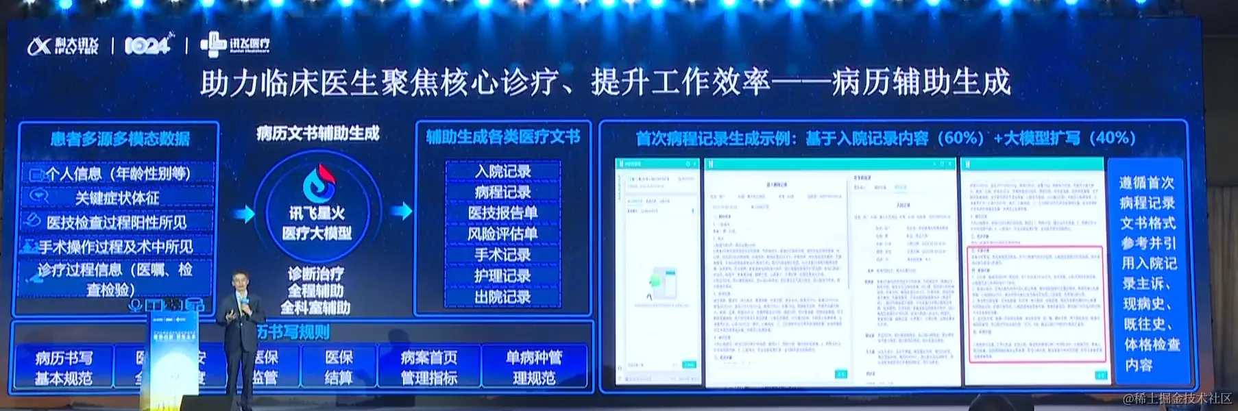 辅助临床医生书写病历,基于记录60%+大模型扩写40%
