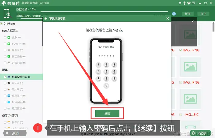步骤4:点击之后,会弹出受信任设备的提示,请大家根据提示在手机上输入密码,输入之后软件便会继续扫描您的设备数据。