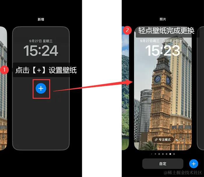 除了在设置中更改壁纸,我们还可以直接在手机锁屏处进行设置。只需要在注视屏幕的状态下长按锁屏即可看到设置壁纸的页面。苹果手机怎么设置壁纸?以下是另一个更换壁纸方法的操作步骤。
