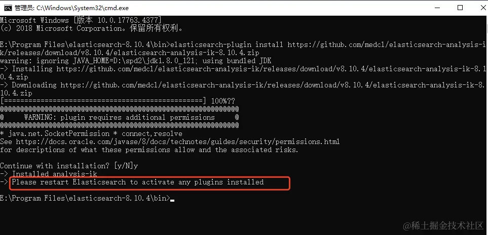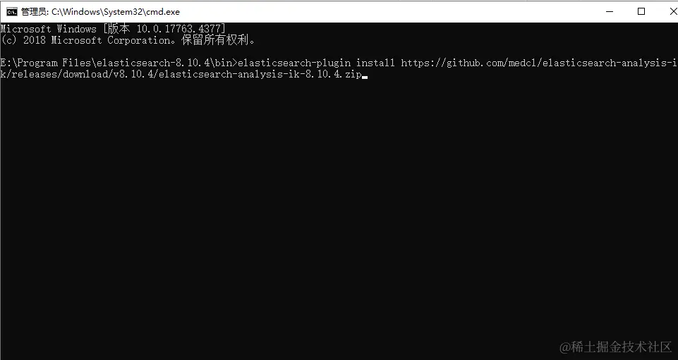 elasticsearch-plugin install https://github.com/medcl/elasticsearch-analysis-ik/releases/download/v8.10.4/elasticsearch-analysis-ik-8.10.4.zip