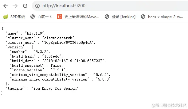 在浏览器访问 http://localhost:9200
