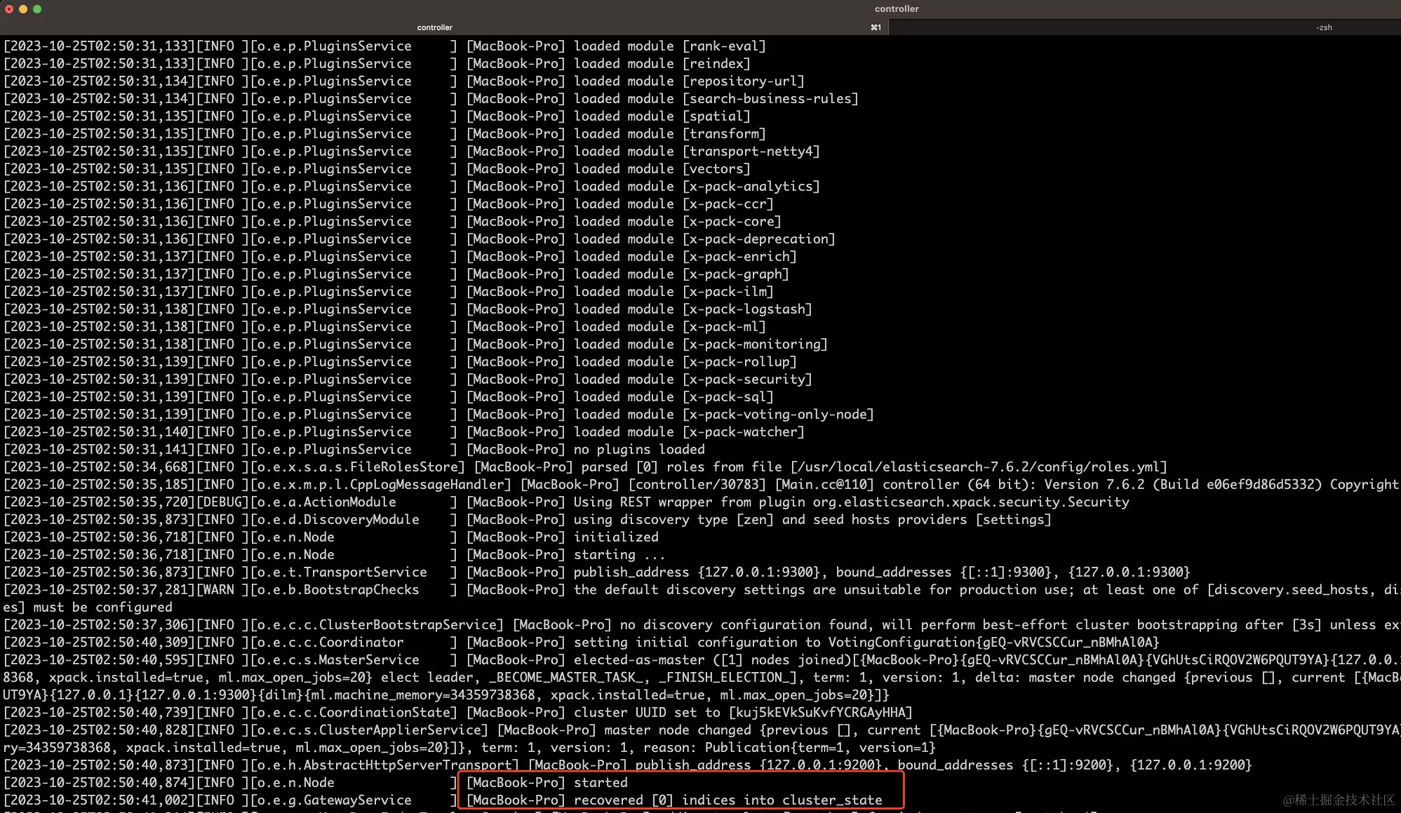 4. 查看elasticsearch 的启动结果