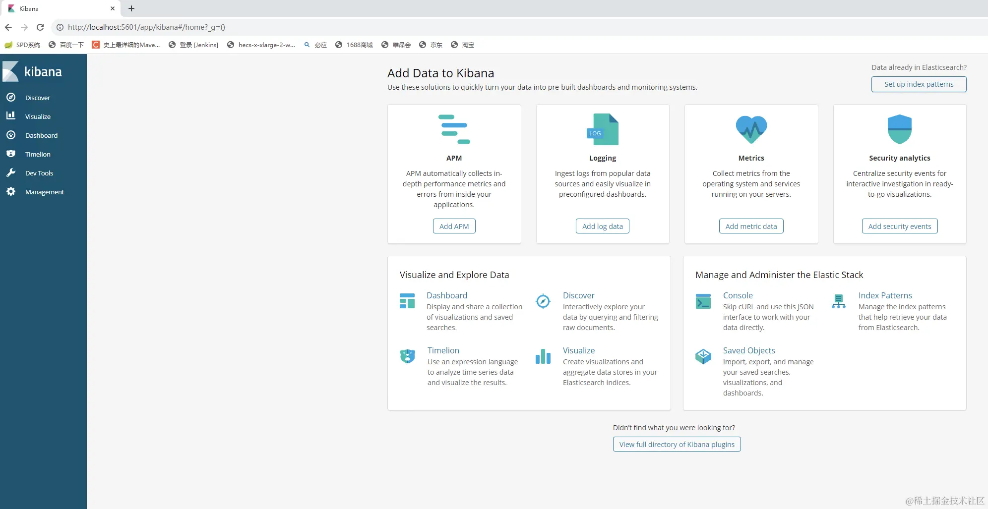 8. 访问http://localhost:5601 即可打开Kibana的用户界面