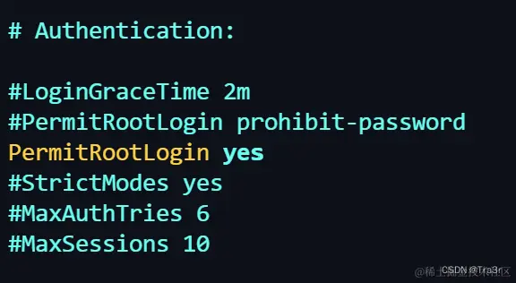 在#PermitRootLogin prohibit-password下添加PermitRootLogin yes