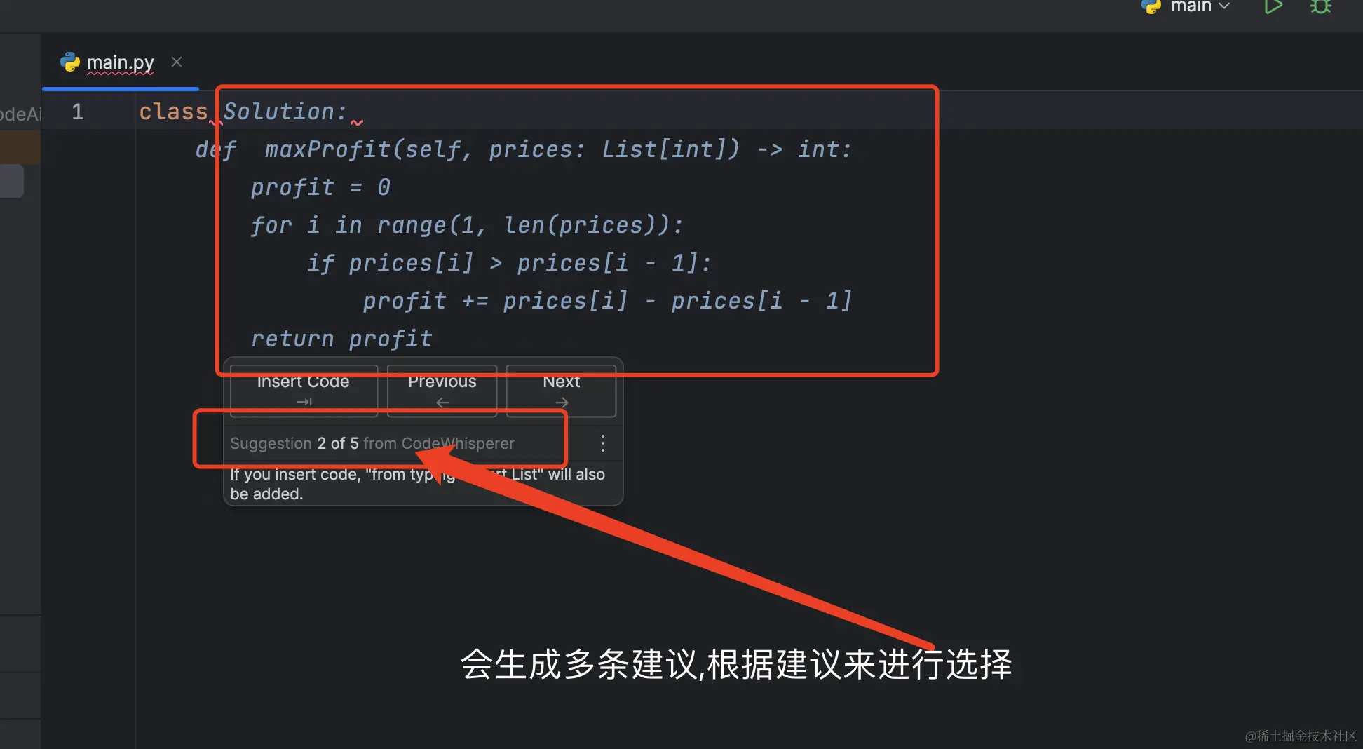 接下来我们根据这个思路 使用CodeWhisperer 来为我们生成关键性代码