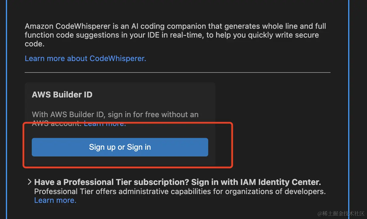 AWS Builder ID来配置对应的id 等信息, 详细操作步骤同PyCharm安装