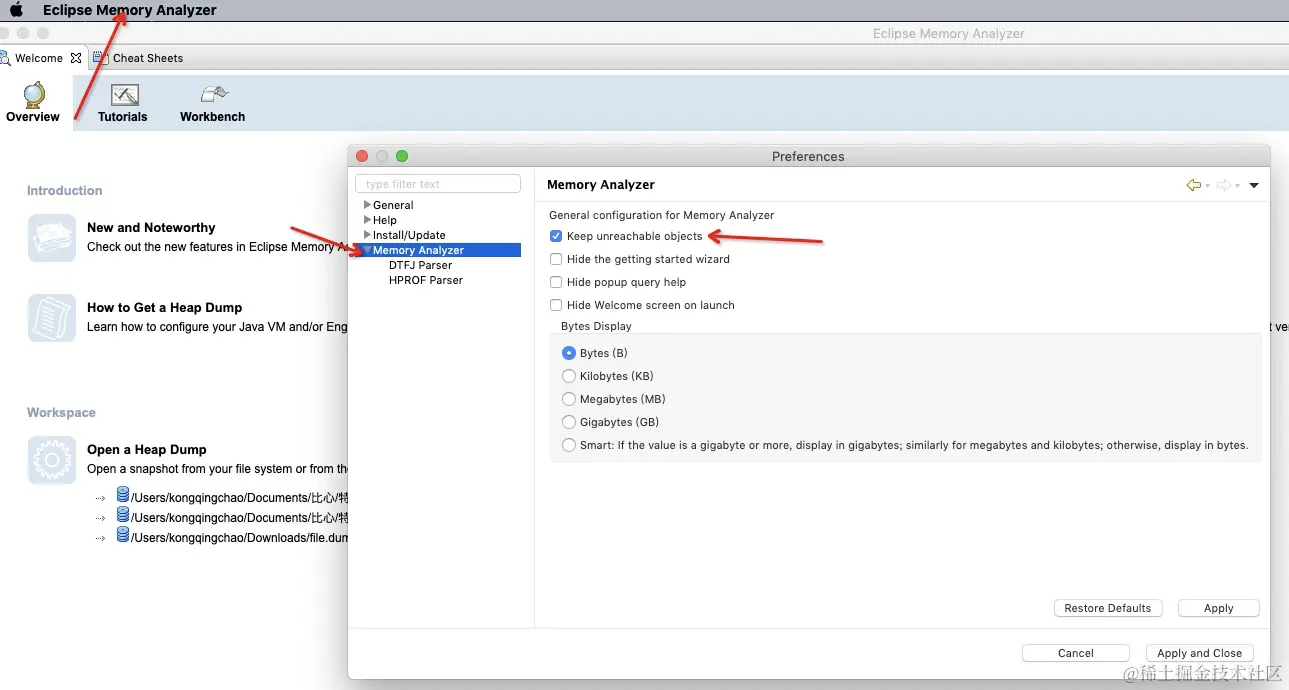 - 启动mat,菜单栏找到"Eclipse Memory Analyzer" -> "Preferences" -> "Memory Analyzer" ,勾选"Keep unreachable objects"