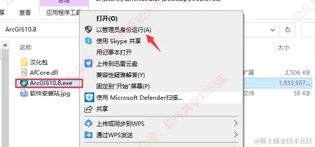 2.进入解压后的文件夹,右键【ArcGIS10.8.exe】选择【管理员身份运行】。