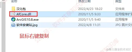 14.回到最开始解压的文件夹,鼠标右击【Afcore.dll】选择【复制】。