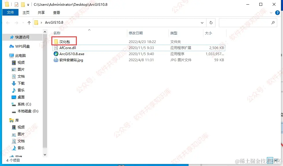 19.再次回到解压后的【ArcGIS10.8】文件夹,双击打开【汉化包】文件夹。