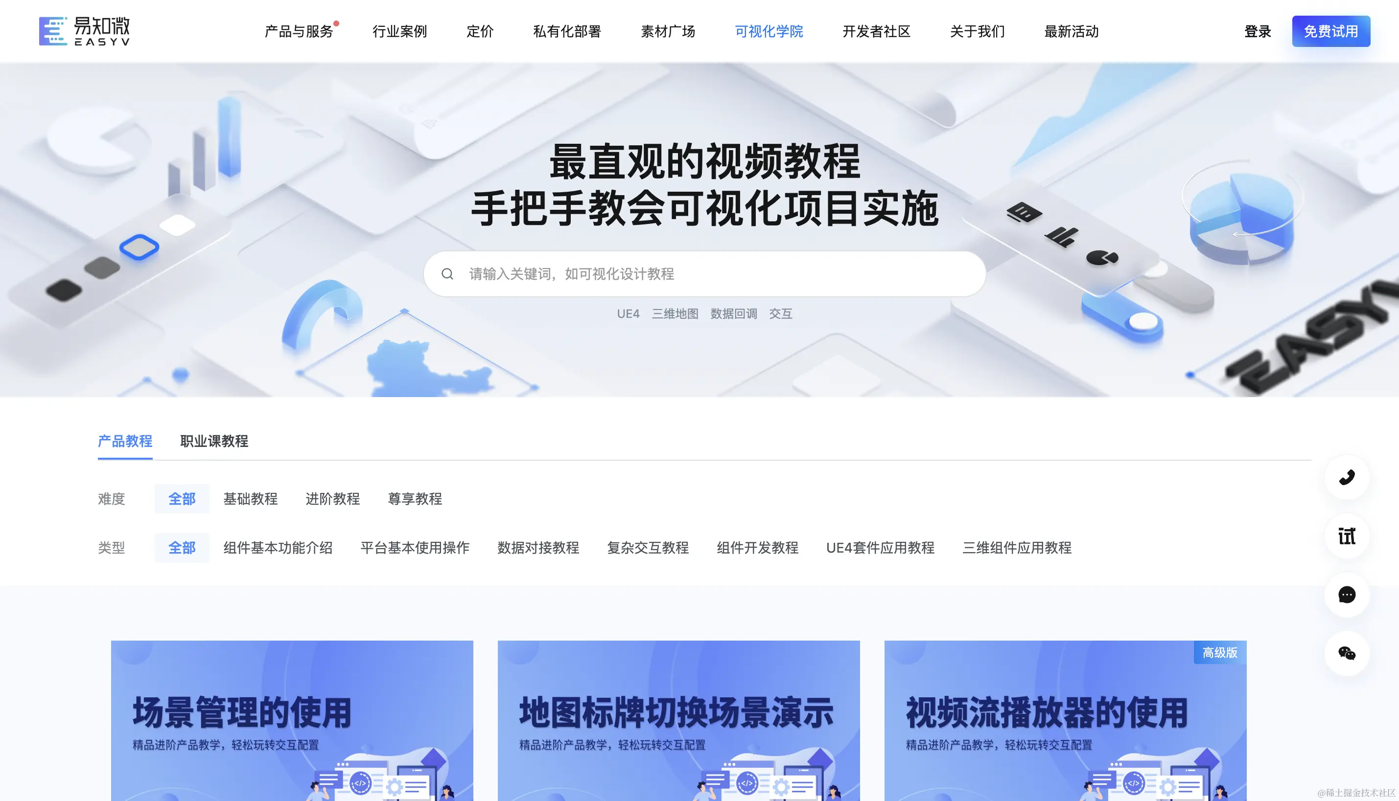 工厂数字化不仅仅是技术的升级,更需要员工的适应和能力提升。企业应提供相应的培训和学习机会,帮助员工熟悉和掌握数字化工具和技术,提高工作效率和智能化水平。易知微低代码可视化平台拥有可视化学院,齐全的平台操作教程、各类行业资讯都定期更新,有效帮助客户更加理解数字化并受益于数字化。