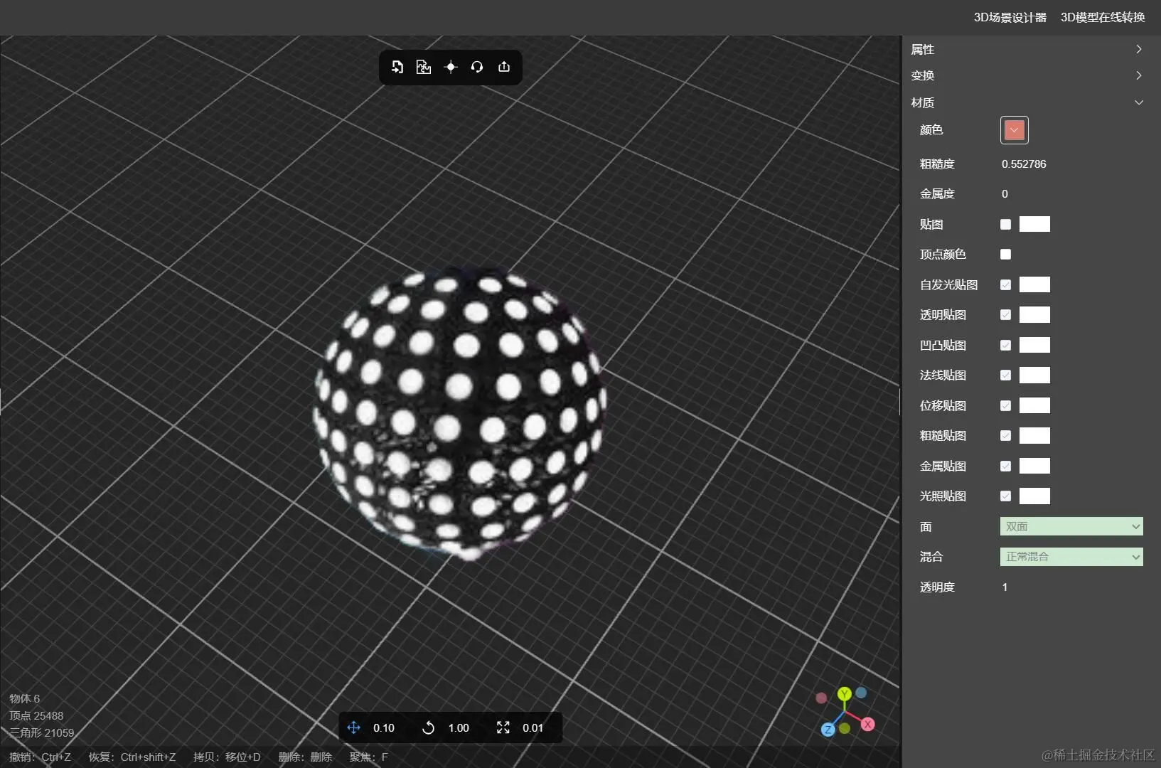 GLTF材质纹理工具 作为一款在线材质纹理编辑工具,编辑器基于Three.js 开发,可以在任意支持webGL的浏览器运行,不需要额外的插件或者下载。