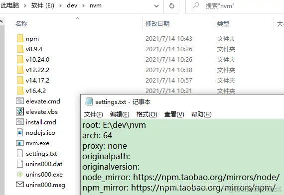 或者 直接修改配置文件(在nvm安装路径下的settings.txt),如下图: