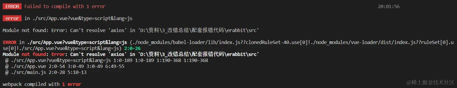 想用axios请求接口,但是终端里报错了