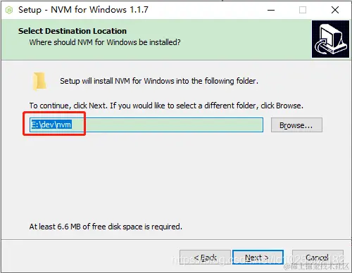 选择nvm的安装路径: