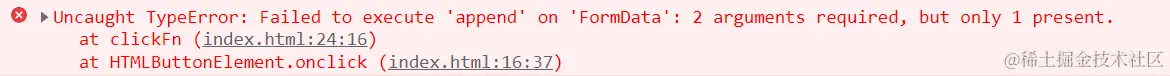Failed to execute append on FormData 2 arguments required but only 1 present