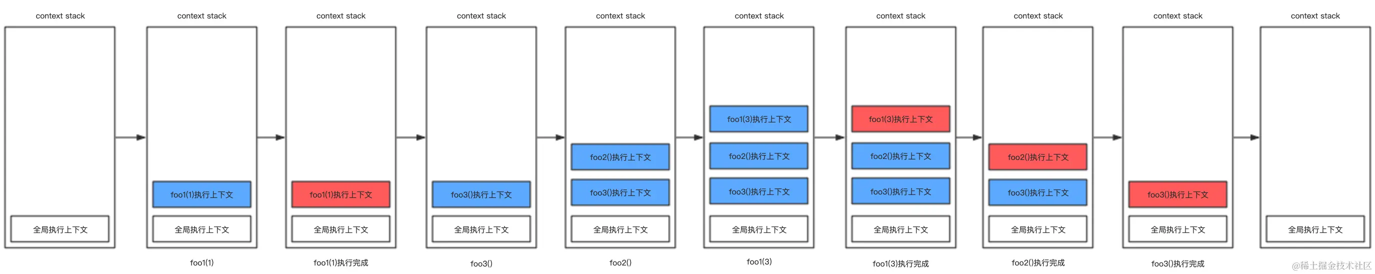 foo2的foo1(3),也会生成对应的执行上下文并压入栈顶 - 按照执行顺序