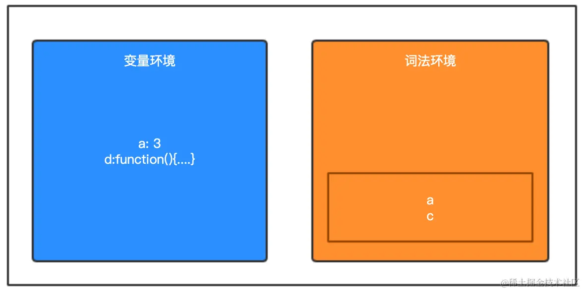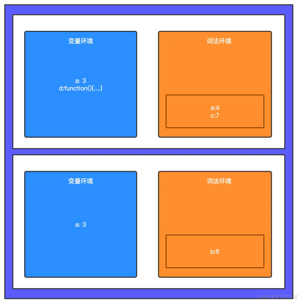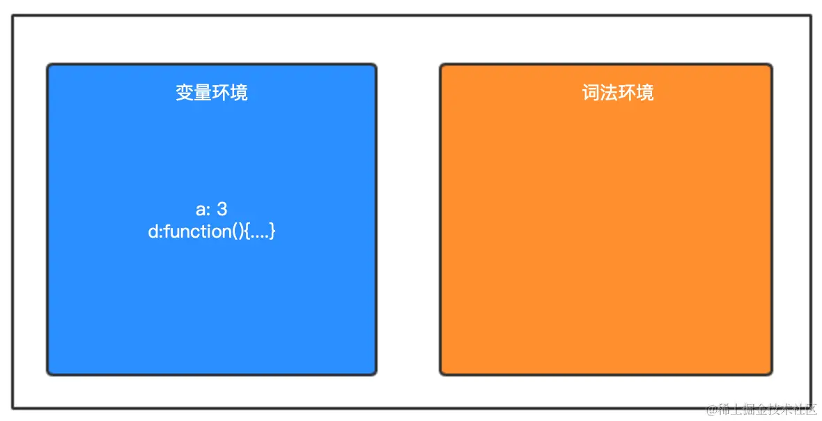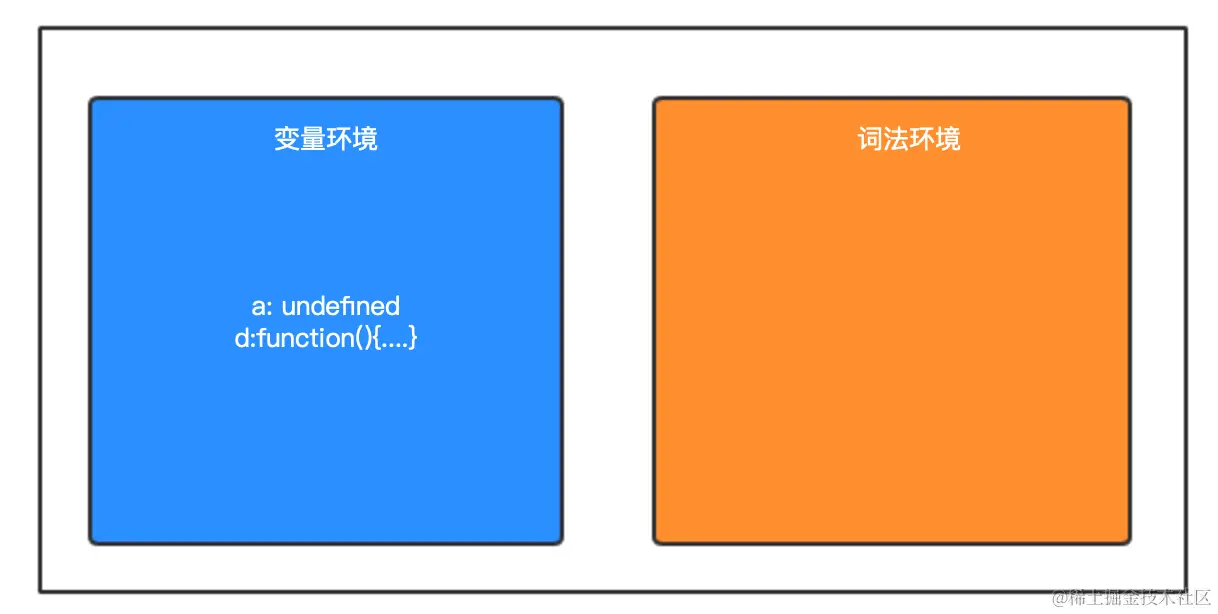 这里面的词法环境和变量环境都是通过一个叫“词法环境对象”的基础对象创建的,也就是说变量环境其实是一个特殊的词法环境,那么变量环境特殊在哪里呢?