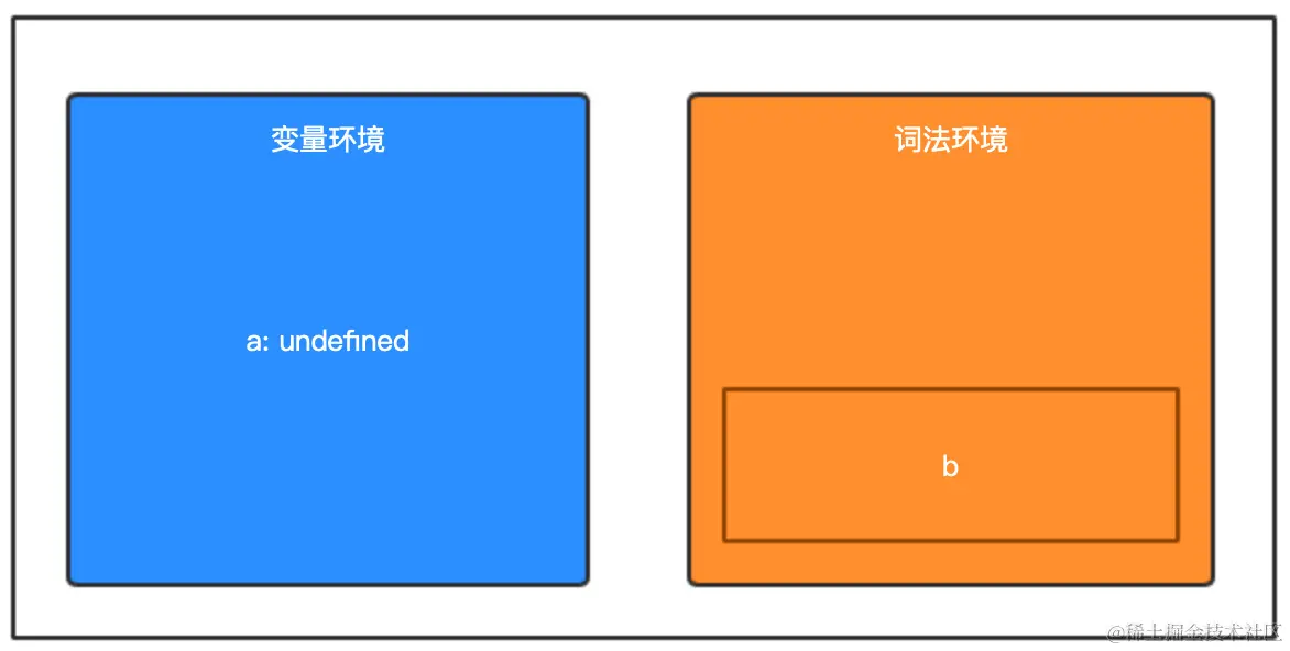 var定义的变量放到变量环境中,let定义的放到词法环境中 -