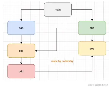 main->aaa->ccc->ddd->eee->bbb