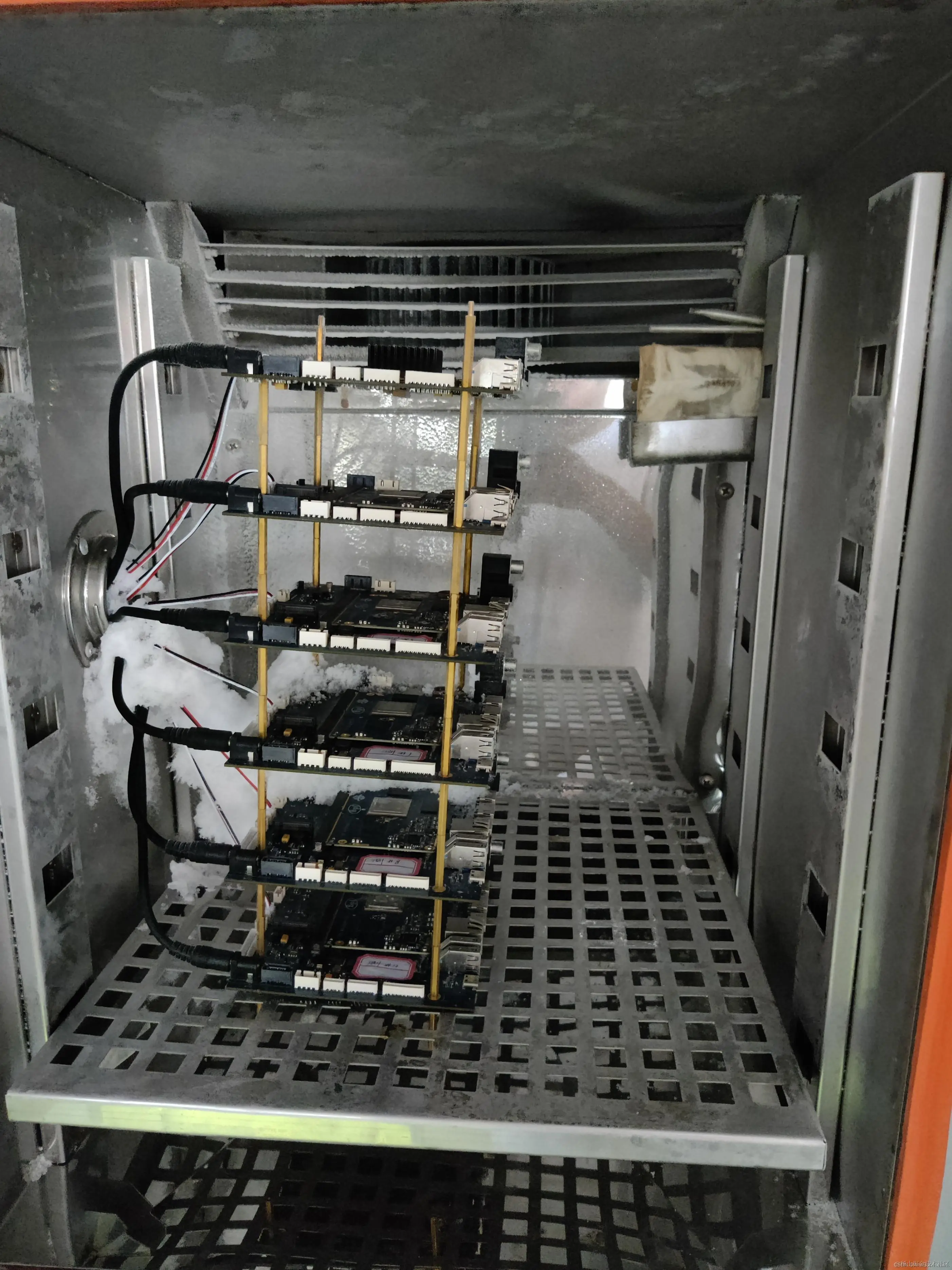 - 测试结果: 在-20℃低温高强度运行了24小时,5块开发板均运行正常。