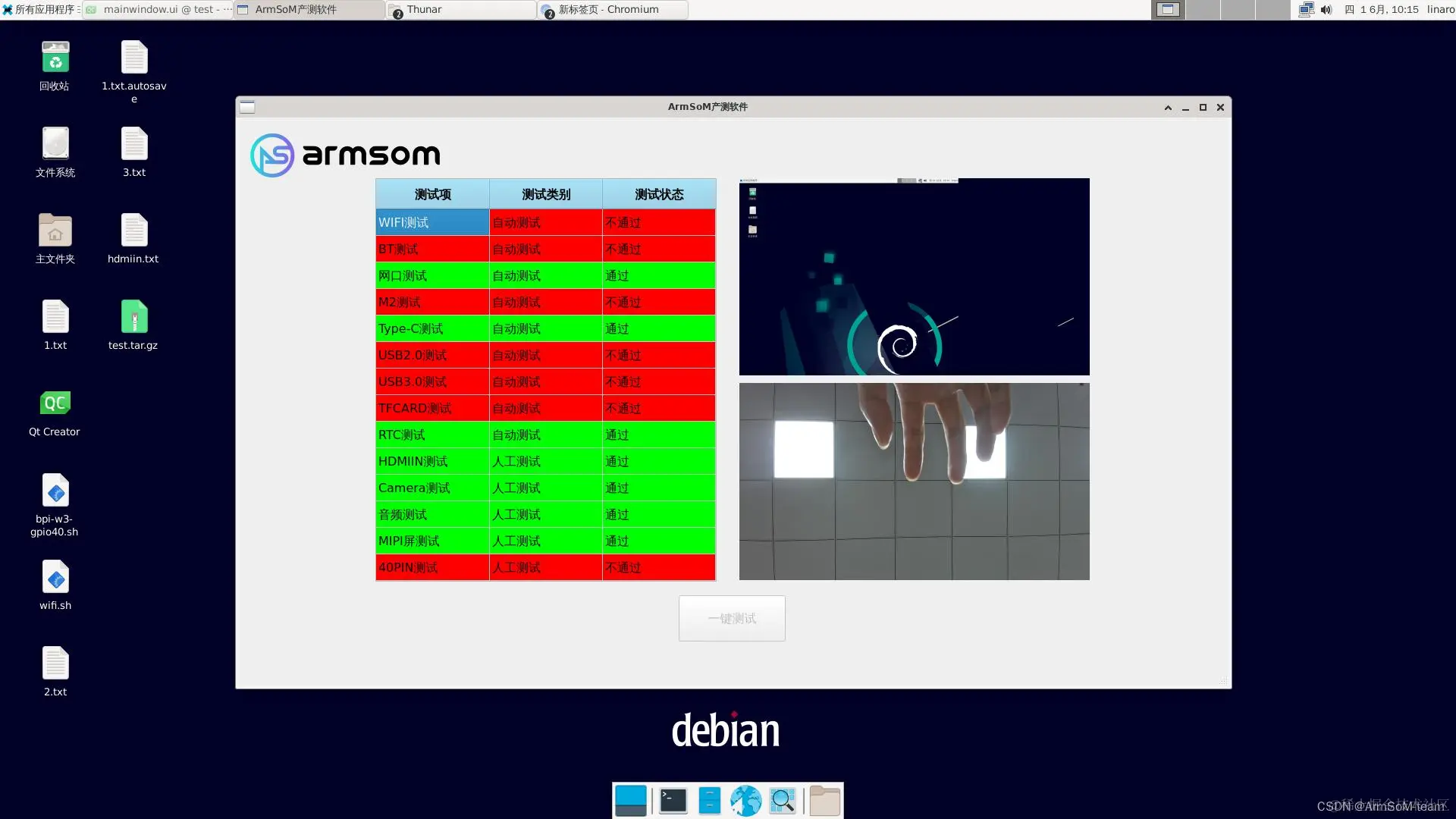- ArmSoM产测软件是直接安装在RK3588开发板上,接上屏幕即可打开产测软件进行测试。