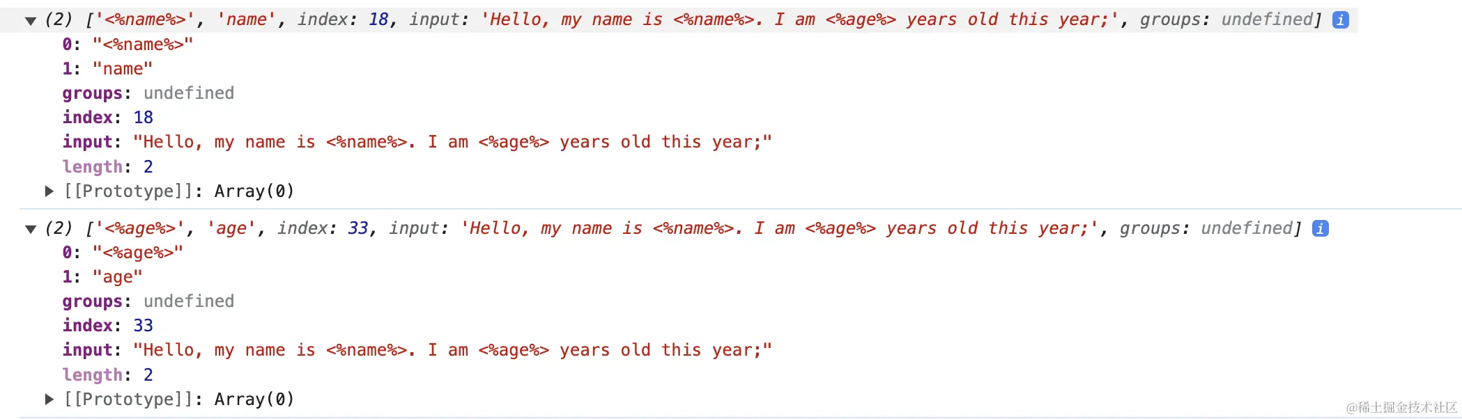 let match = re.exec(tpl);