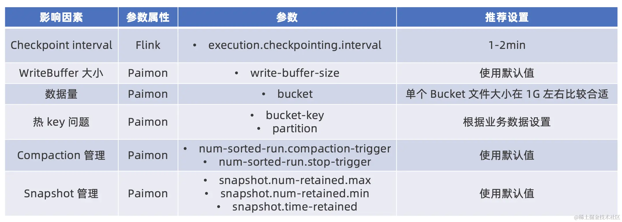 - Checkpoint interval::推荐在 1-2 min 比较合适;