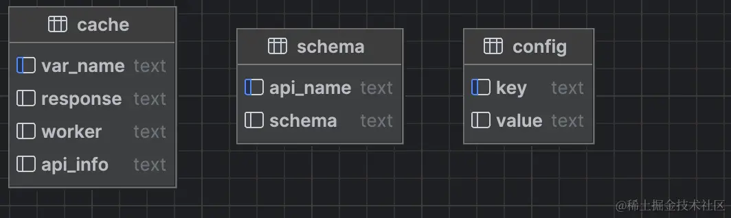 config.yaml中的配置存到config表中,该配置会固化不清理,除非更改了测试环境。 - cache:存储测试过程中上下游接口之间的依赖接口的响应,会搭配后文将要讲到的