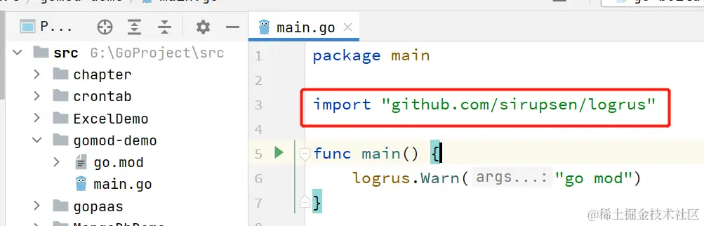 将main.go 文件中import引入的包,就会缓存到本地。