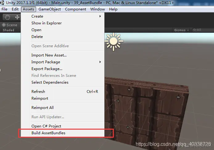 3:在Unity菜单下,点击该选项,进行打包,打包好后资源就存在了