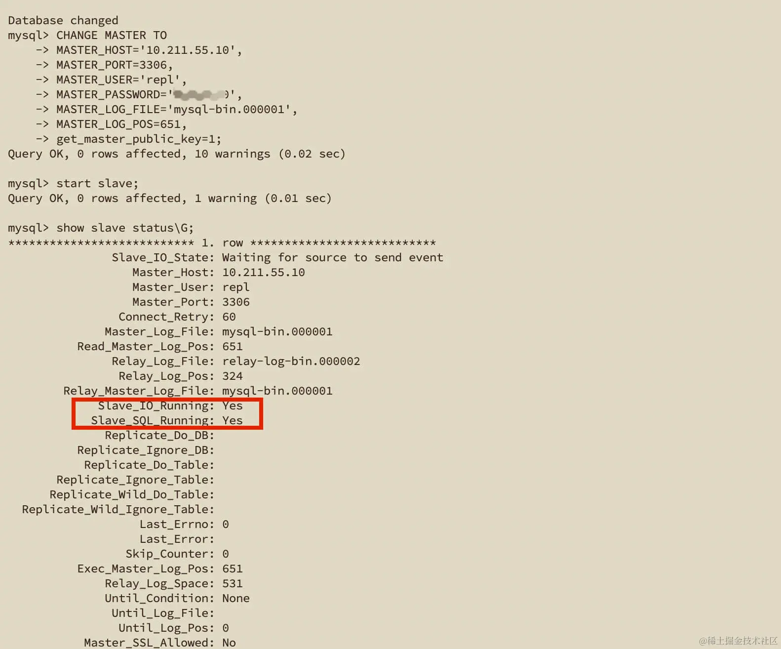 MASTER_HOST='10.211.55.10', # 主Mysql地址