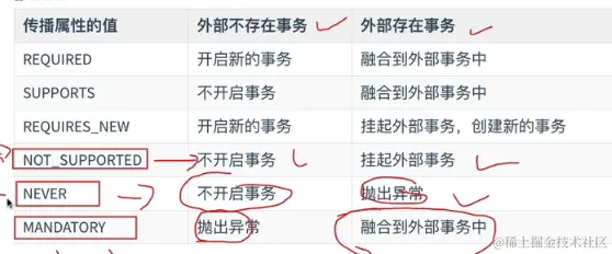 问题: 大事务中融入了很多小的事务,他们彼此影响,最终就会导致外部大的大事务,失去了事务的原子性。