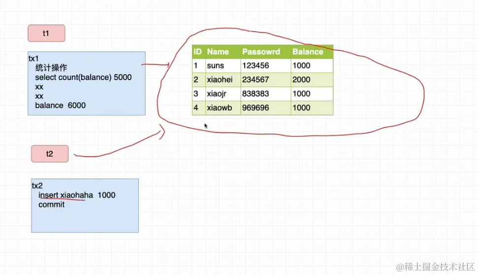 suns媳妇开启事务,先查询了余额1000,然后进行一系列操作,suns这时候取了200,并且已经提交,这时候suns媳妇又查询了余额发现为800,两次读取余额不一致