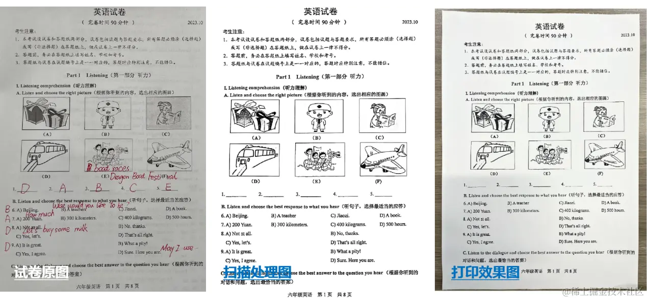 除了需要解决移动打印的痛点之外,用户更加关注打印出来的文件是否干净、清晰。出门在外,随身携带的文档很容易产生污渍、折痕,这些痕迹在打印时可能被保留下来。若采用手机扫描的方式进行打印,图像的弯曲畸变,手指遮挡、阴影等干扰因素,都将影响最终打印的效果。