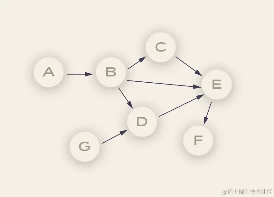 如图所示的任务依赖关系,一种有效的执行顺序是A -> G -> B -> D -> C -> E -> F。